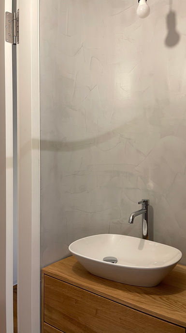 Besonders hervorzuheben ist die spezielle abgerundete Wand, die den Durchgang vom Korridor zum Wohnbereich öffnet.